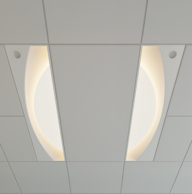 Focal Point’s Saros Duo™ supports wellness and recovery through research-backed lighting scenes. It uses direct and indirect light sources to visually transition between high and low levels of illumination over the course of the day.