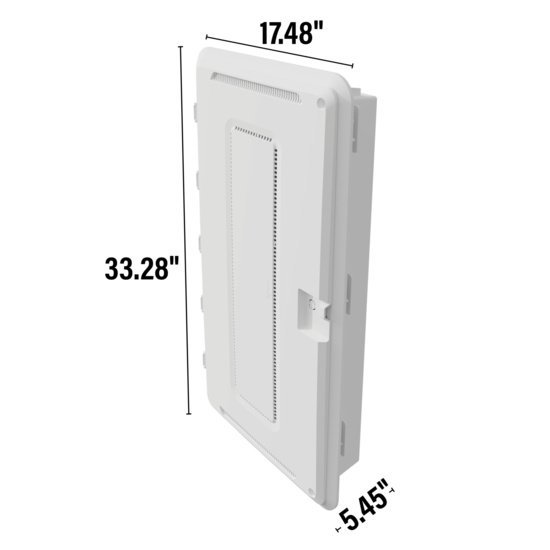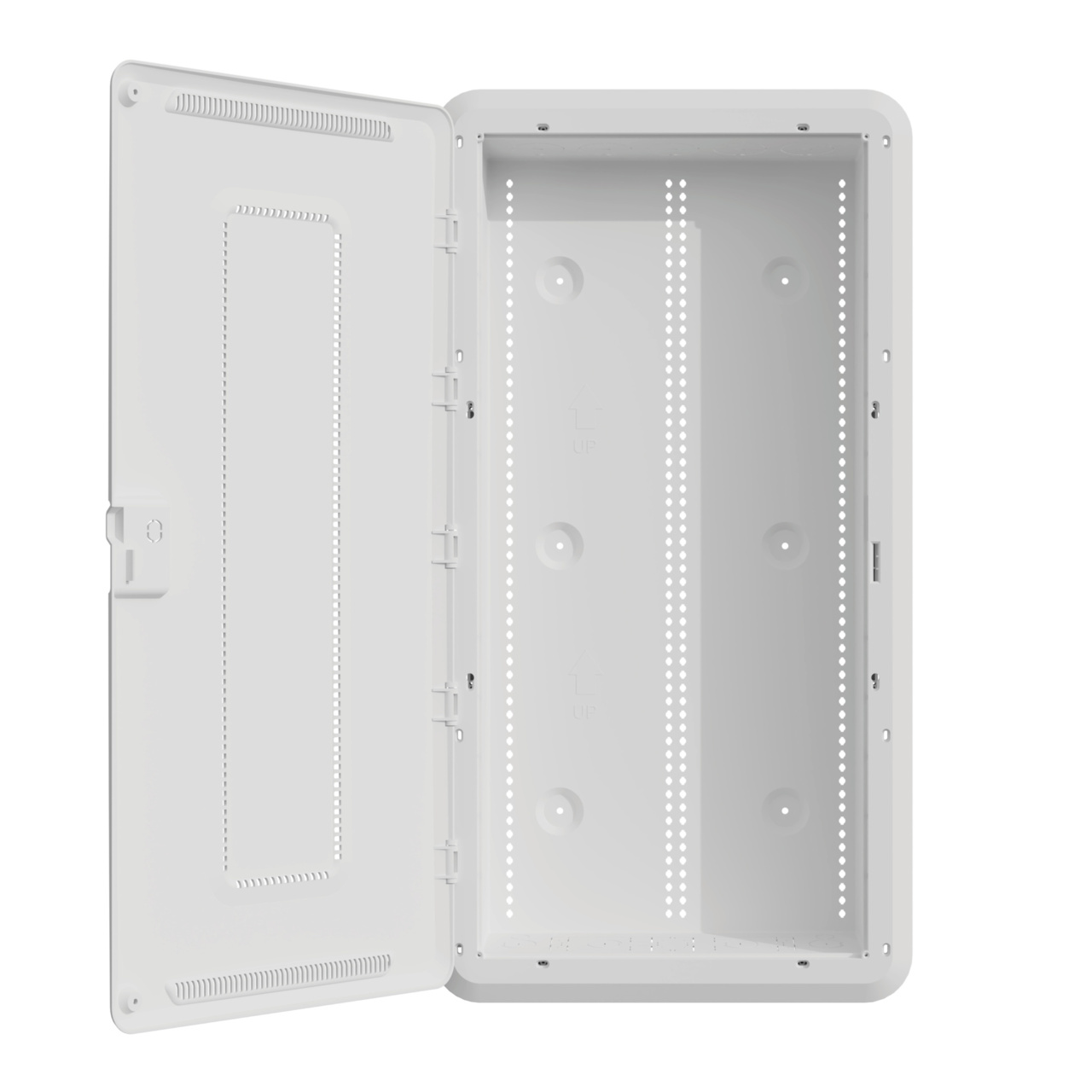Our 30-inch plastic enclosure is our most popular model and ideal for single family and production homes. It is lightweight, low-profile, made with a robust, wireless transparent ABS plastic material that is designed to integrate wired and wireless devices into traditional structured wiring installations. It is easy to install and includes a trim ring to ensure a professional look even with the messiest of drywall cutouts.