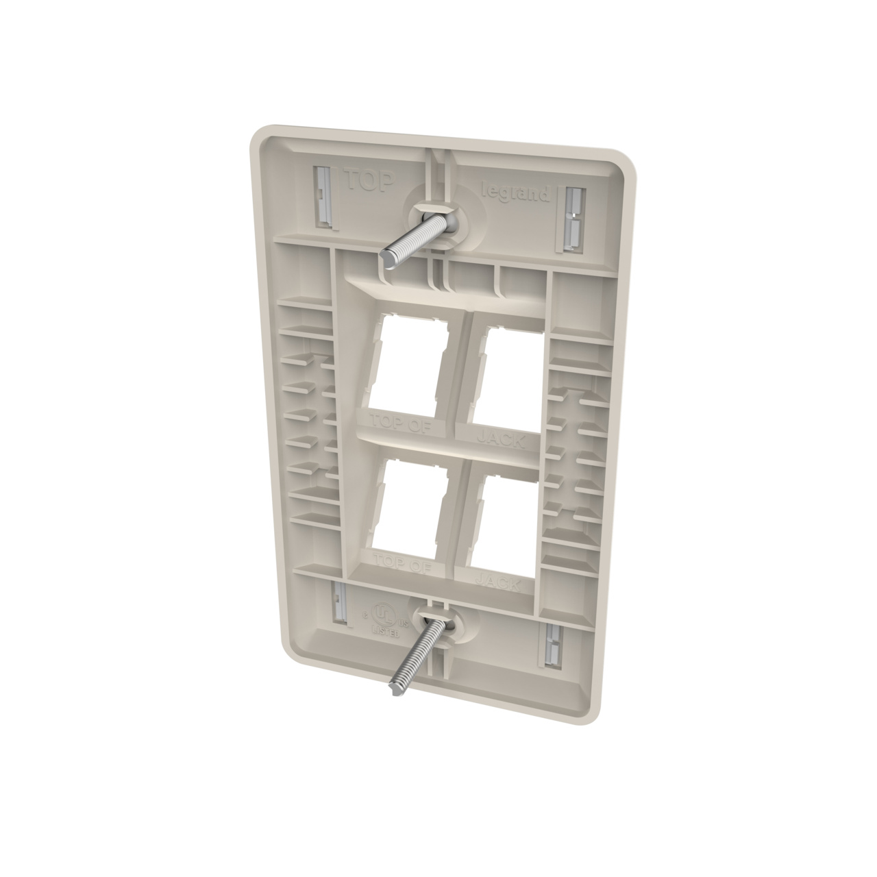 SINGLE GANG HDJ ANGLED FACEPLATE, 4 PORT, FOG WHITE