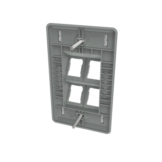 SINGLE GANG HDJ ANGLED FACEPLATE, 4 PORT, WM DARK GRAY