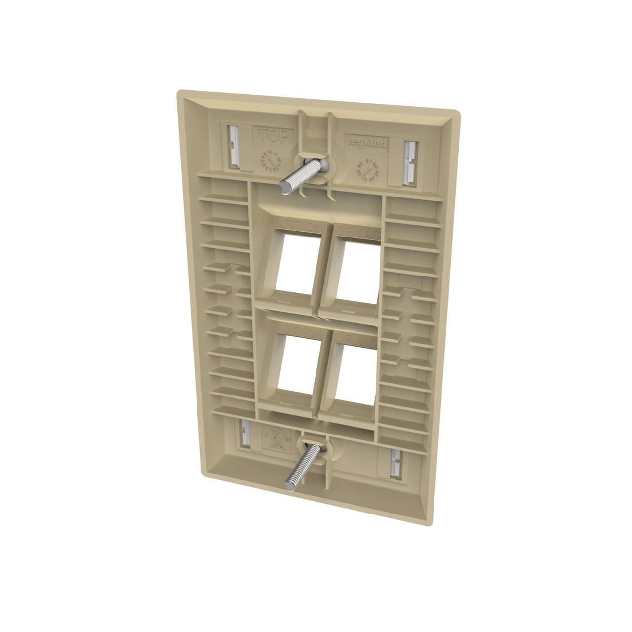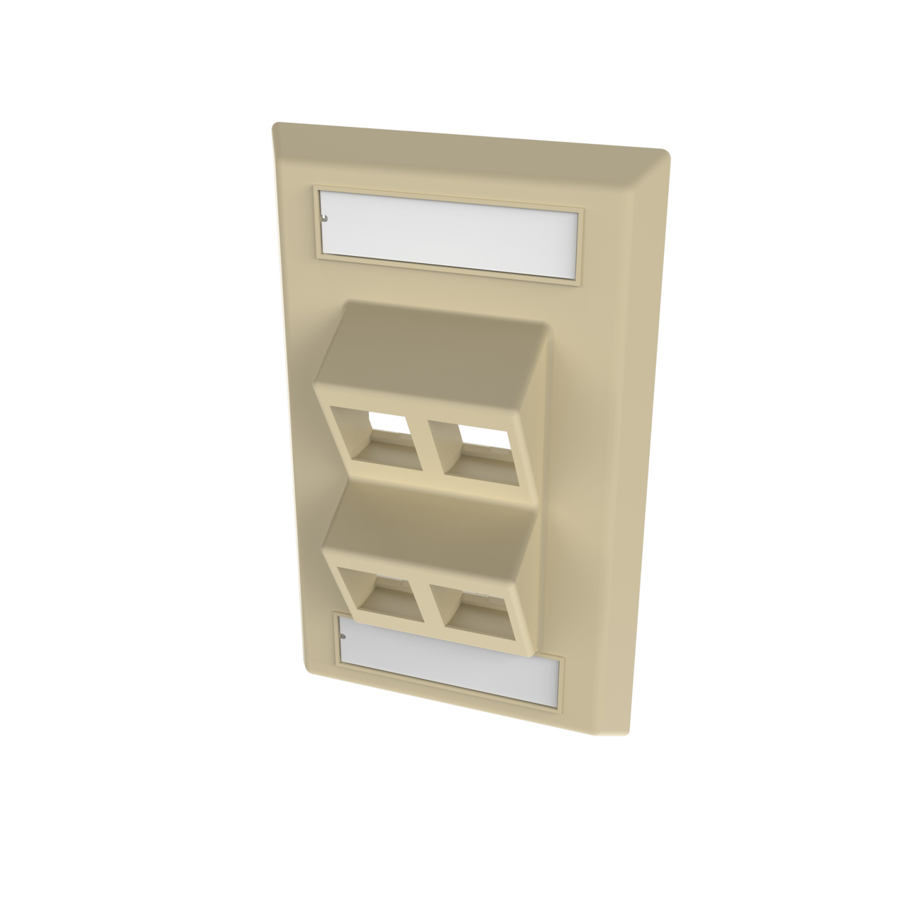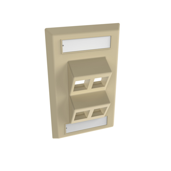 SINGLE GANG KEYSTONE ANGLED FACEPLATE, 4 PORT, IVORY