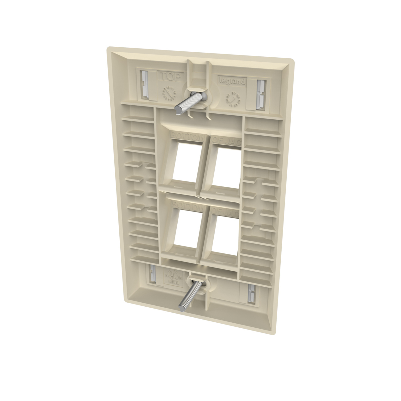 SINGLE GANG KEYSTONE ANGLED FACEPLATE, 4 PORT, WM IVORY