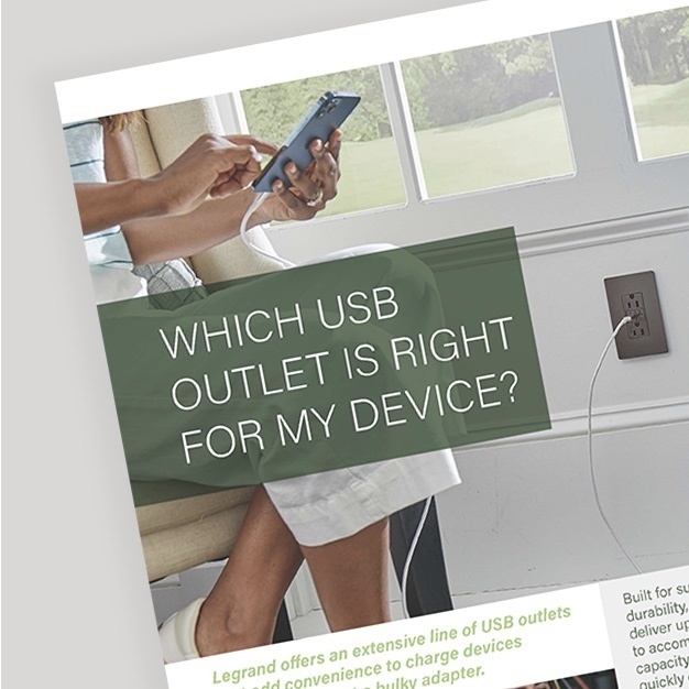 USB Charging – backed by a brand you can trust. With more than 130 years of experience designing and manufacturing electrical wiring devices, Legrand produces USB outlets with the highest standard of quality and reliability. The extensive line of USB solutions is developed to meet the needs of residential, commercial and hospital applications, featuring Type-C and Type-A ports available in various amps and wattages.