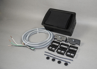 Field-wired with black, flush cover. Unit comes with two 20A gasketed prewired receptacles with a 3/8'' (9.5mm) diameter 6' (1.83m) flexible whip. Includes adapter for Wiremold CM Series Open System communications outlets. Communication modules sold separately.