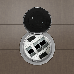 Designed for retrofit and new construction, Evolution Series 8'' Recessed Poke-Thru devices provide convenient access to power, communications, and audio/video services recessed below floor level - providing maximum device protection. With 5 Gangs of capacity, you will be able to configure services for the needs of your space. The low-profile metal covers are available in brushed aluminum, satin brass, satin nickel, and multiple powder-coated finishes designed to match any space. Evolution Series 8'' Poke-Thru devices are the perfect fit for kiosks, meeting rooms, training rooms, classrooms, healthcare facilities or commercial buildings with open-space architecture. For carpet, tile, wood and laminate concrete floor coverings.