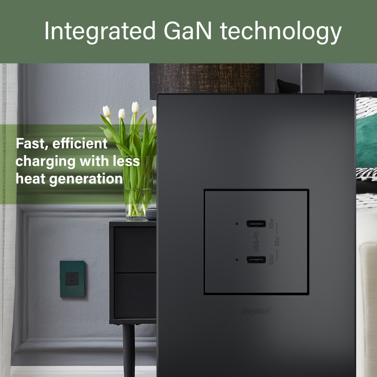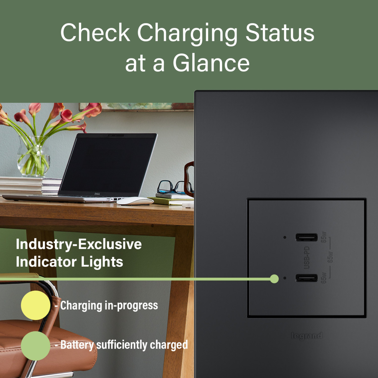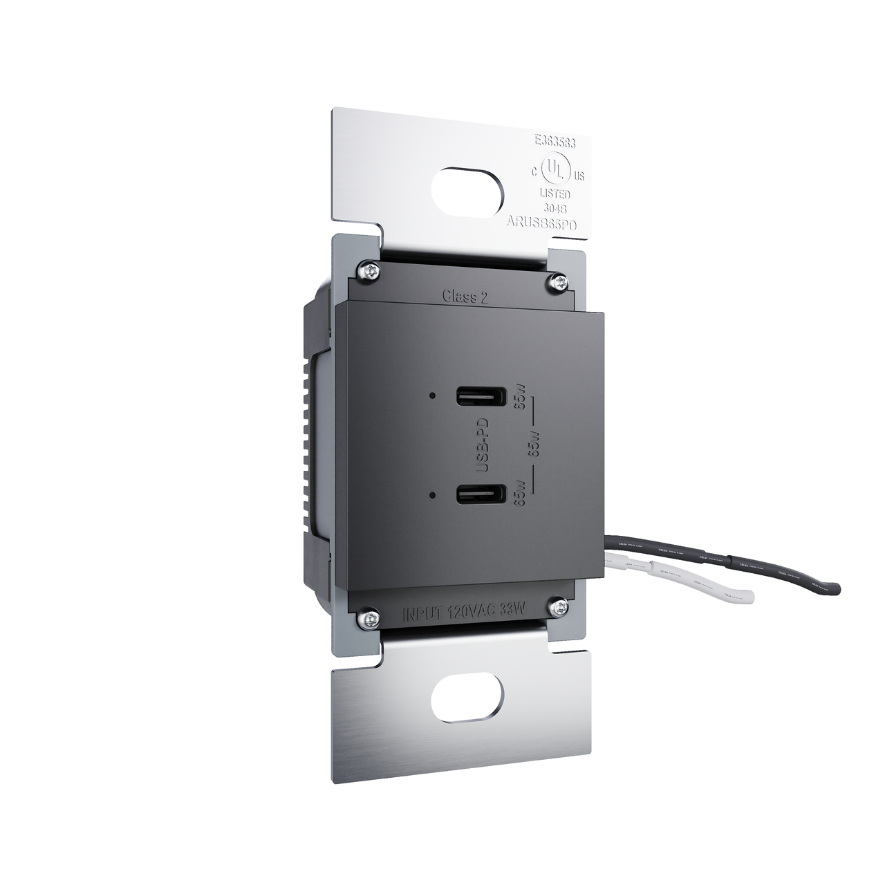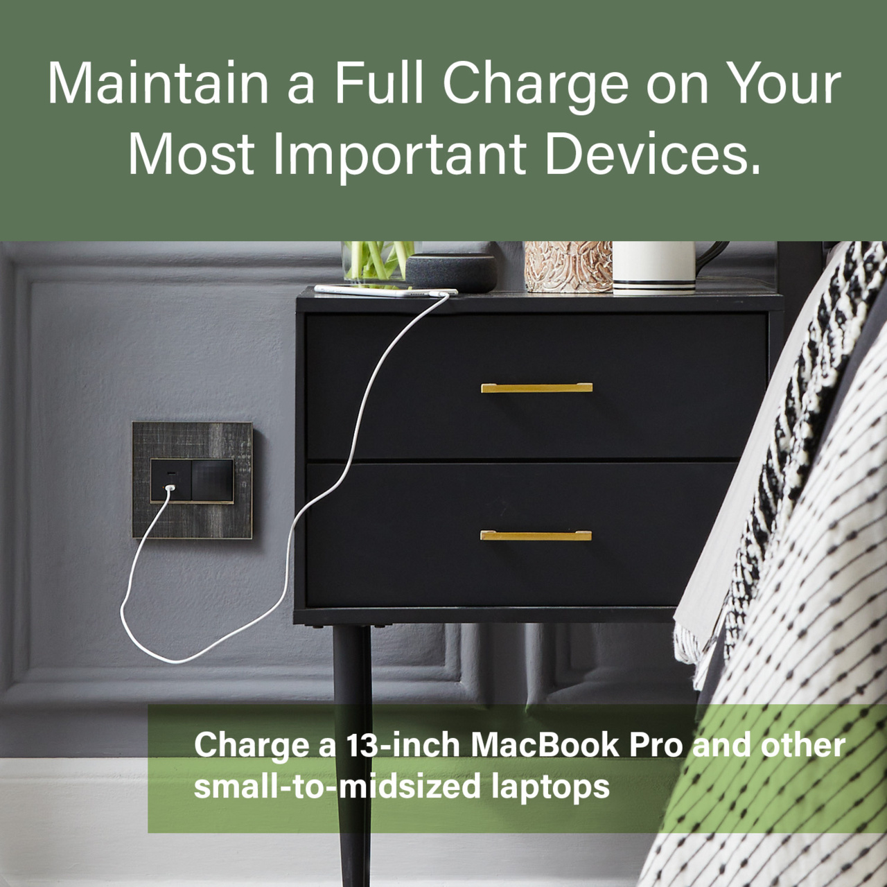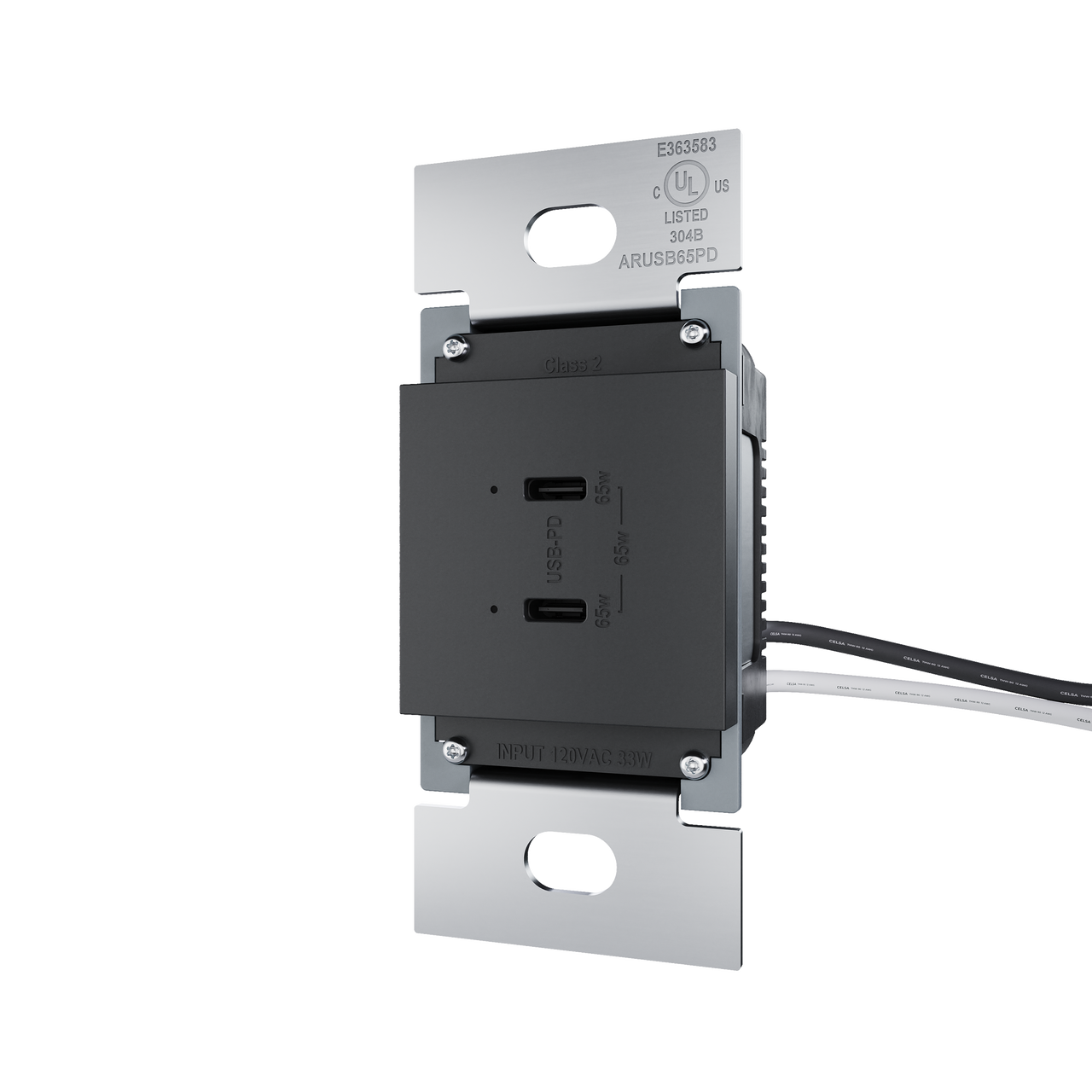 Featuring two USB Type-C ports with industry-leading 65W of power each, this device provides the fastest USB charging for phones, tablets and laptops. Advanced Power Delivery provides intelligent charging that negotiates optimal voltage and current between the outlet and the device being charged. Easily replaces a traditional outlet in as little as ten minutes. Enjoy USB charging functionality in every room of your home with the unique adorne contemporary aesthetic. Made exclusively for use with screwless wall plates from the adorne® Collection, sold separately.