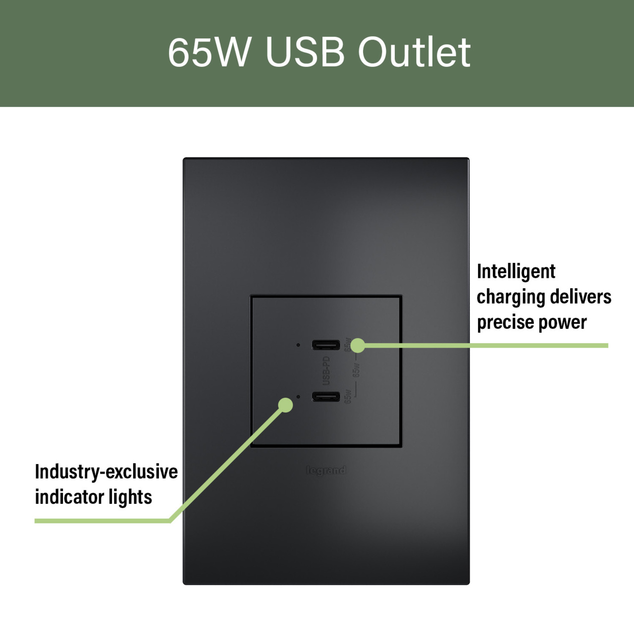 - Legrand USB Outlets are manufactured through high-quality design, sourcing and production, and backed by a Limited Lifetime Warranty.