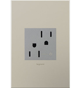 A modern upgrade for style, safety and energy management, this tamper-resistant, dual-controlled outlet from the adorne Collection installs easily in place of an existing outlet. Made exclusively for use with screwless Wall Plates from the adorne Registered Collection, sold separately.