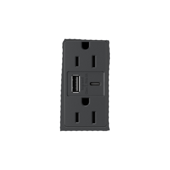 Make it easier to get a full battery for your smartphones, tablets and more with the convenience of built-in charging. A perfect charging solution for your current and future electronic devices, this tamper-resistant USB outlet features connections for USB Type-A and the newer USB Type-C. Easily replacing traditional outlets in as little as ten minutes, this outlet offers accessible charging without needing bulky adapters or sacrificing your plugs, and features the sleek, clean lines of radiant® for a sophisticated look.