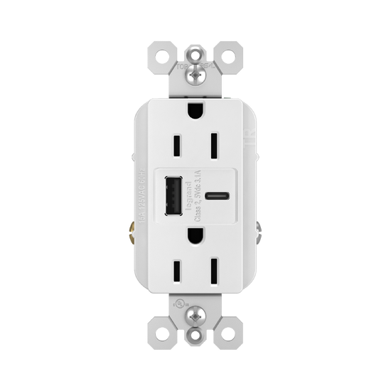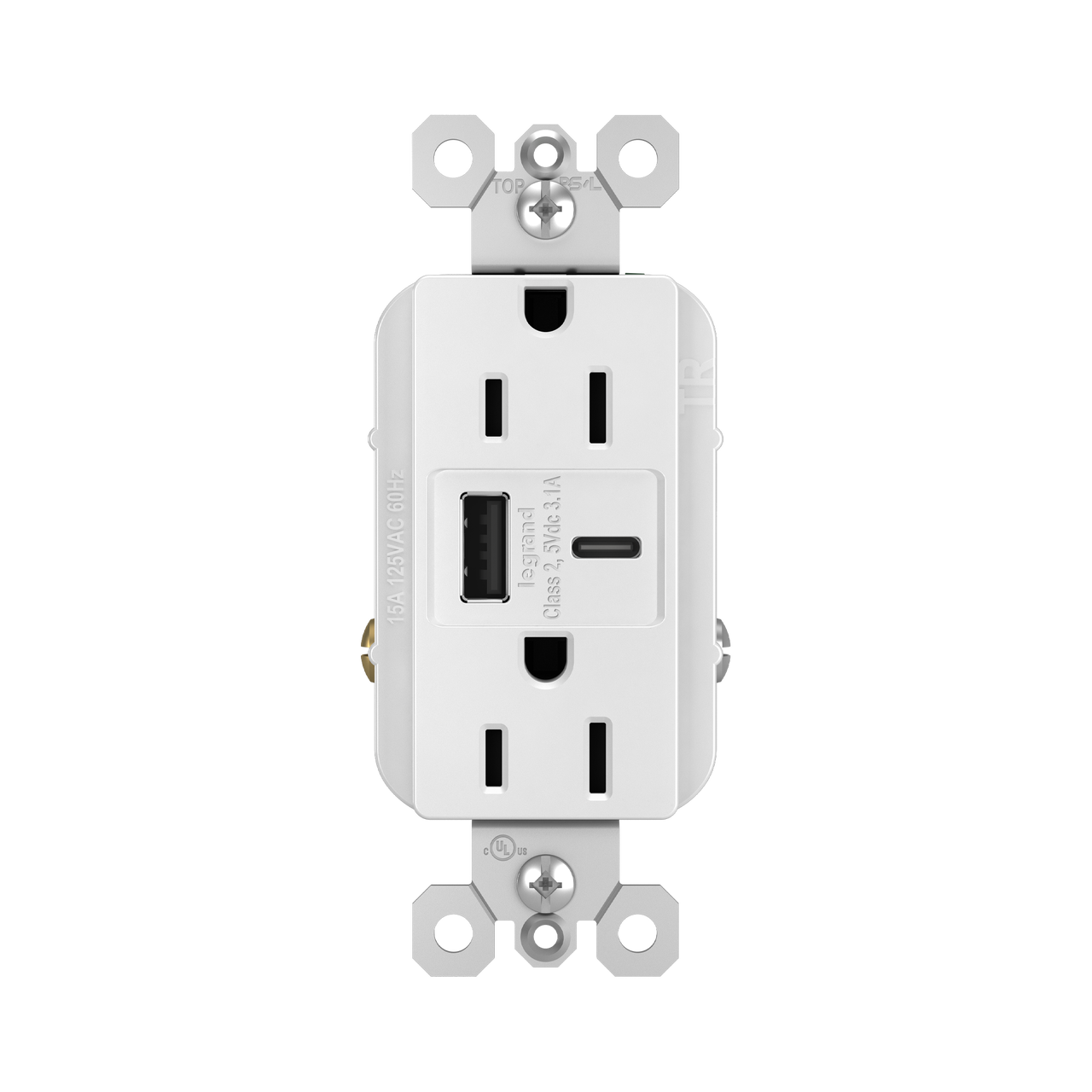 Make it easier to get a full battery for your smartphones, tablets and more with the convenience of built-in charging. A perfect charging solution for your current and future electronic devices, this tamper-resistant USB outlet features connections for USB Type-A and the newer USB Type-C. Easily replacing traditional outlets in as little as ten minutes, this outlet offers accessible charging without needing bulky adapters or sacrificing your plugs, and features the sleek, clean lines of radiant® for a sophisticated look.