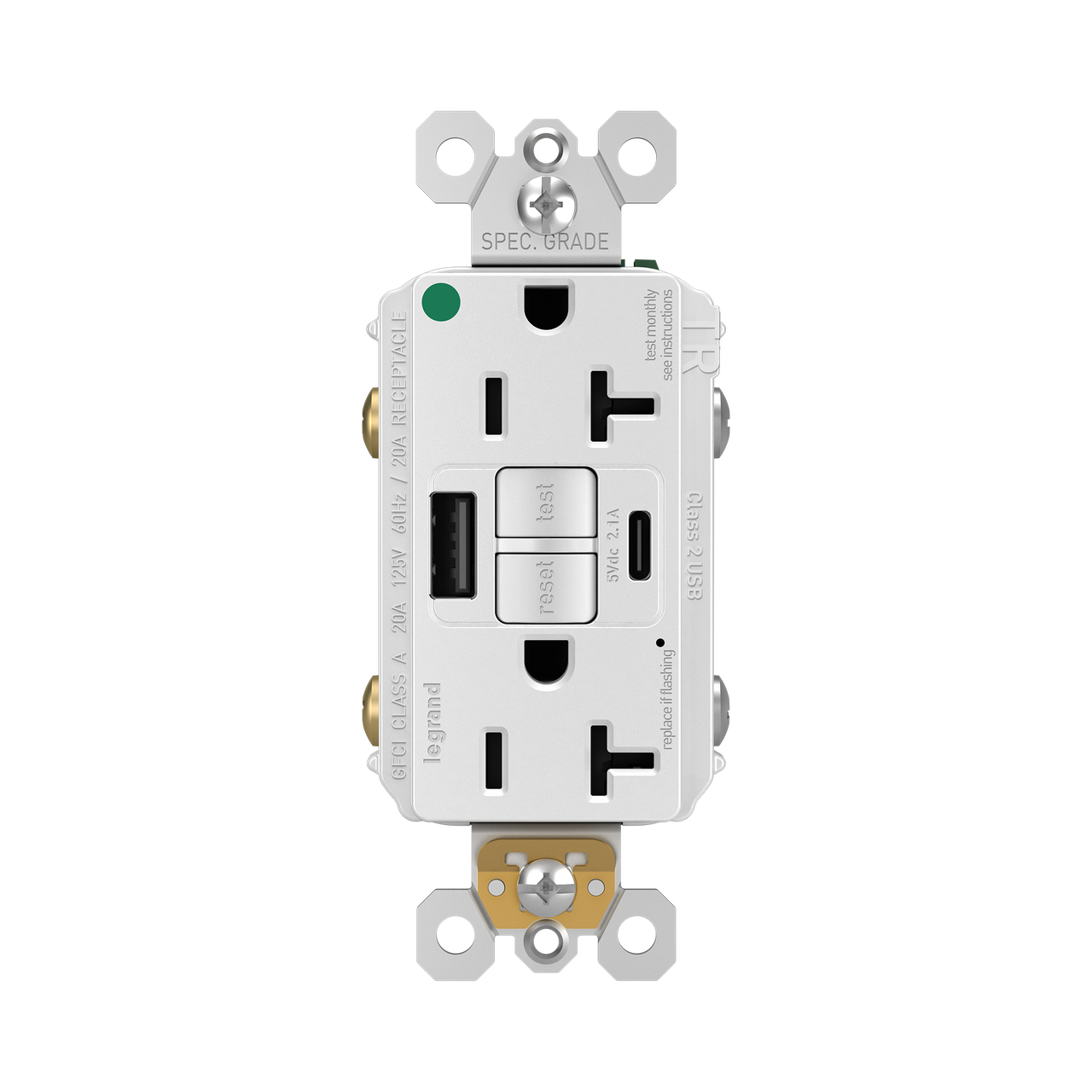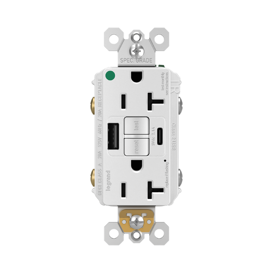 Provide superior safety and the convenience of built-in USB charging, with this first-of-its-kind outlet. Perfect for adding modern connectivity anywhere desired, even in the areas of hosptial and healthcare facilities where ground fault protection is required. This outlet makes it easy to see and reset electrical trips right where they happen, while also providing two USB connections for keeping phones or tablets charged, no bulky adapter necessary.