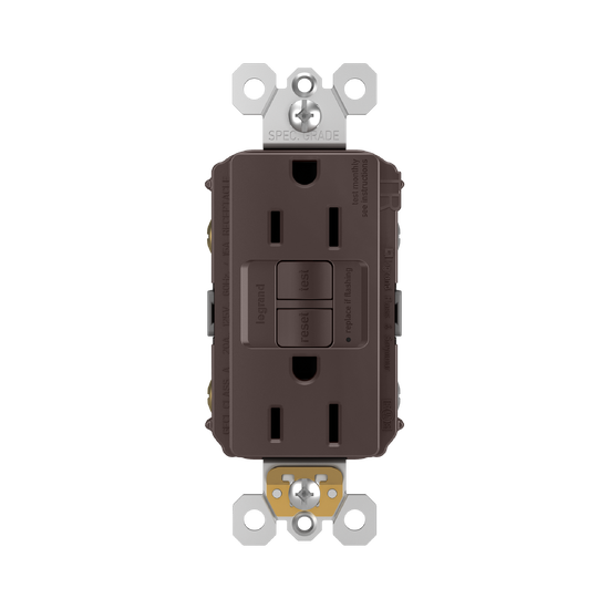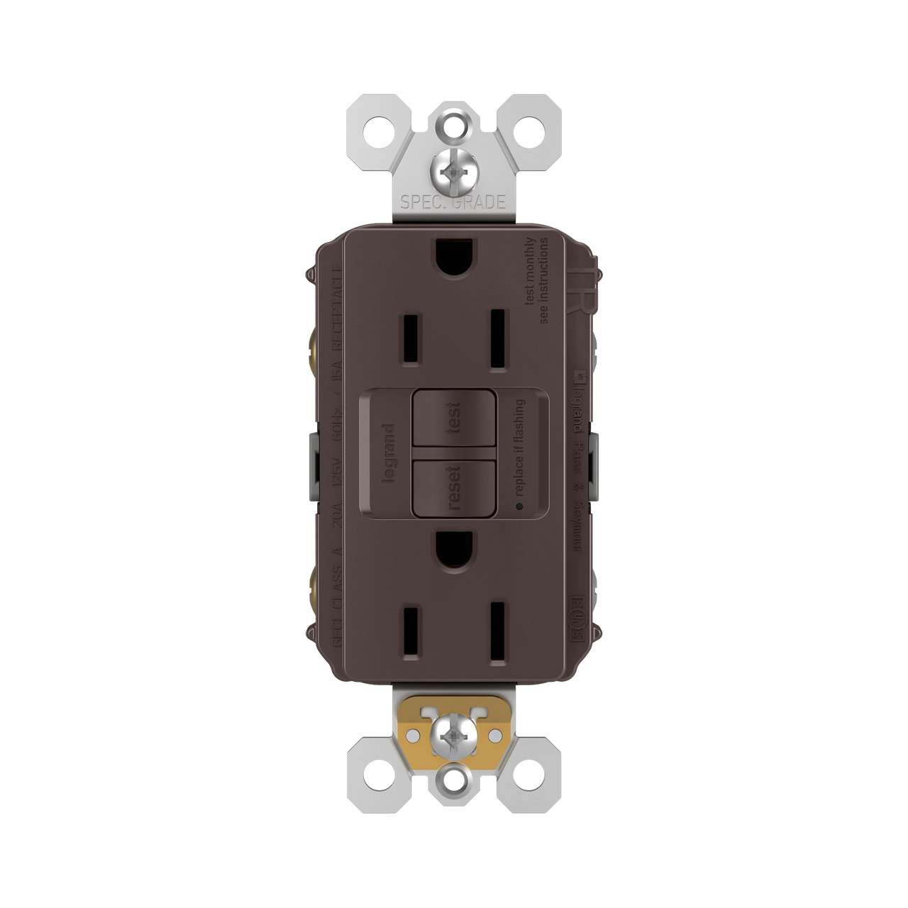 radiant® Tamper-Resistant 15A Duplex Self-Test GFCI Receptacles with SafeLock® Protection, Dark Bronze