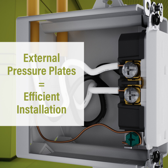 - External pressure plate enables faster installation by eliminating the need to loop wire