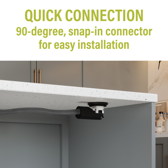 - Features a quick connecting termination tail that is wired above the counter and a hand-turn nut that requires no tools under the counter
