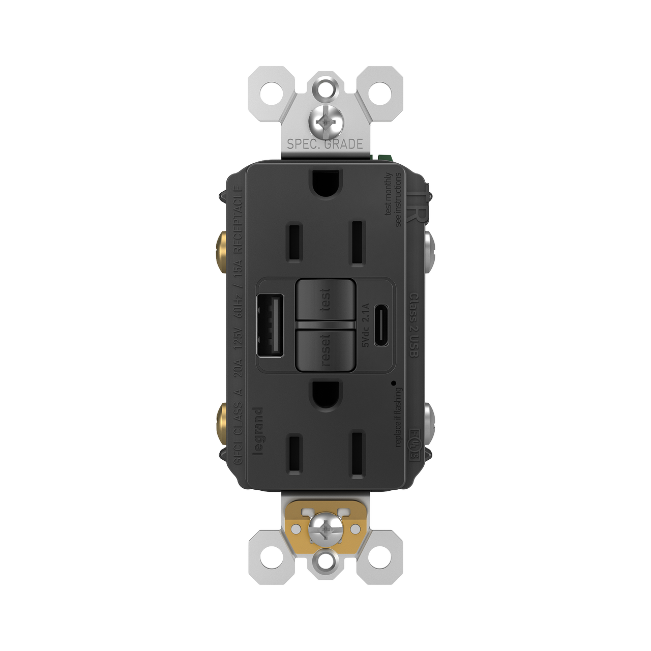 | Outlet Type | GFCI, Self-Test, Tamper-Resistant, USB-Charging | ||