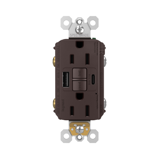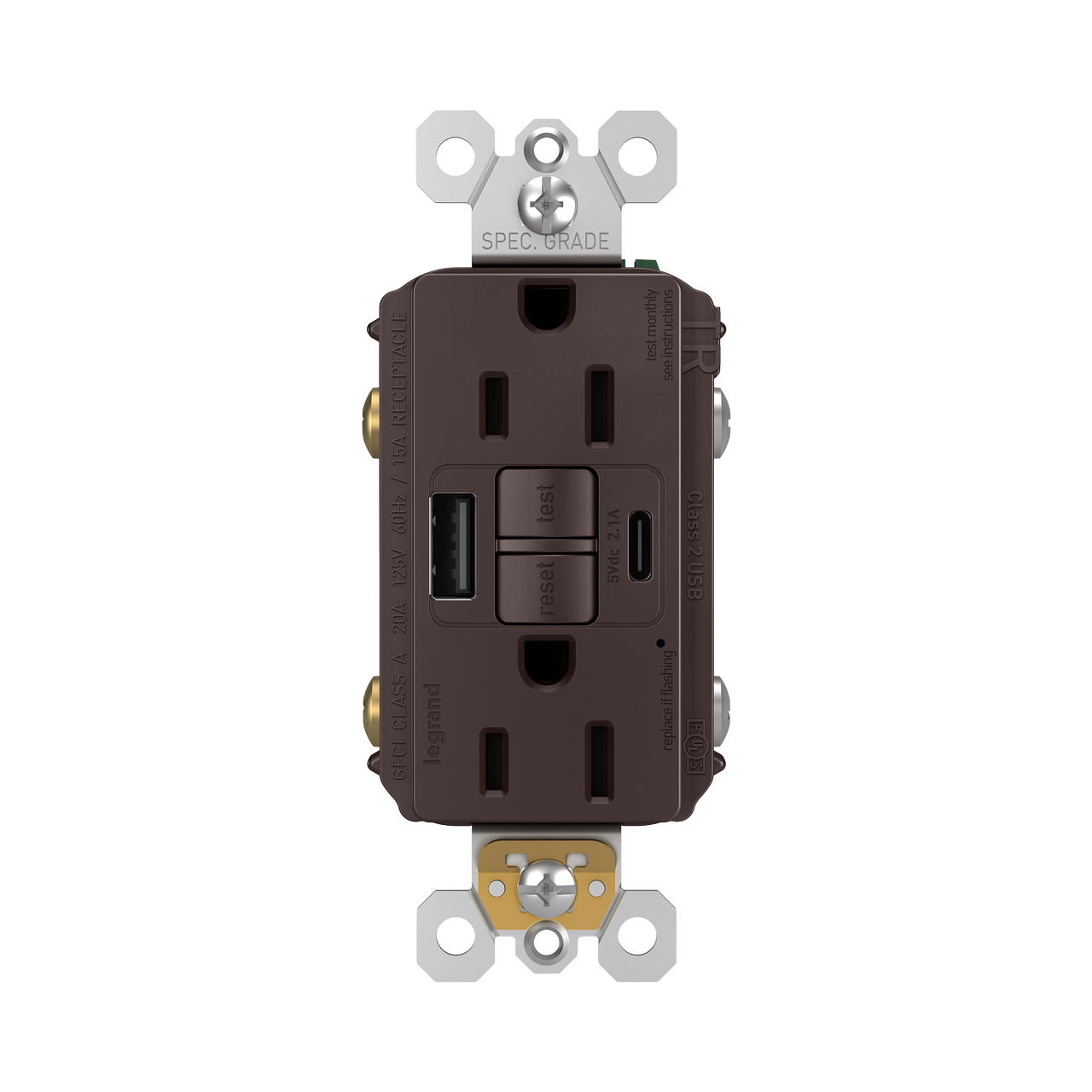 radiant® GFCI USB Outlet with SafeLock® Protection, Type A/C, 15A, Tamper-Resistant, Dark Bronze C4