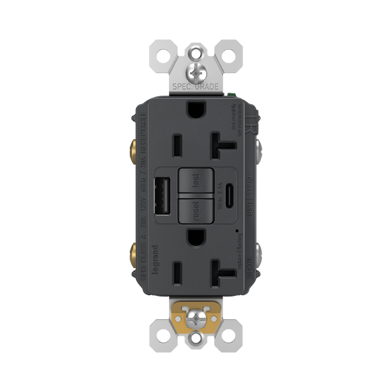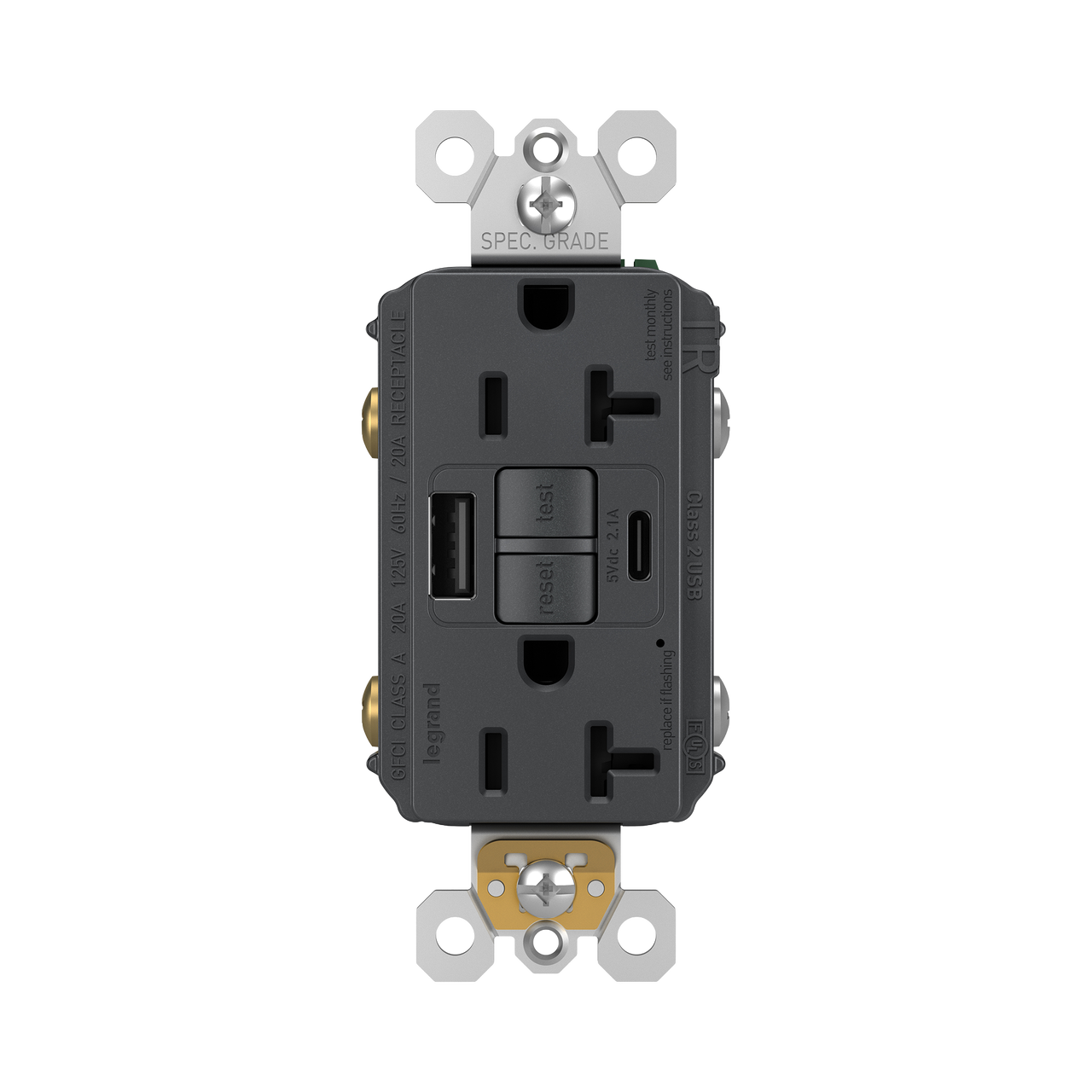 radiant® GFCI USB Outlet with SafeLock® Protection, Type A/C, 20A, Tamper-Resistant, Graphite