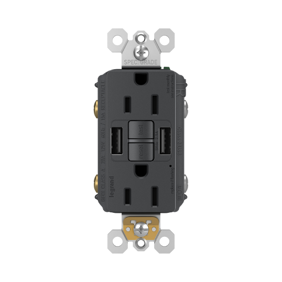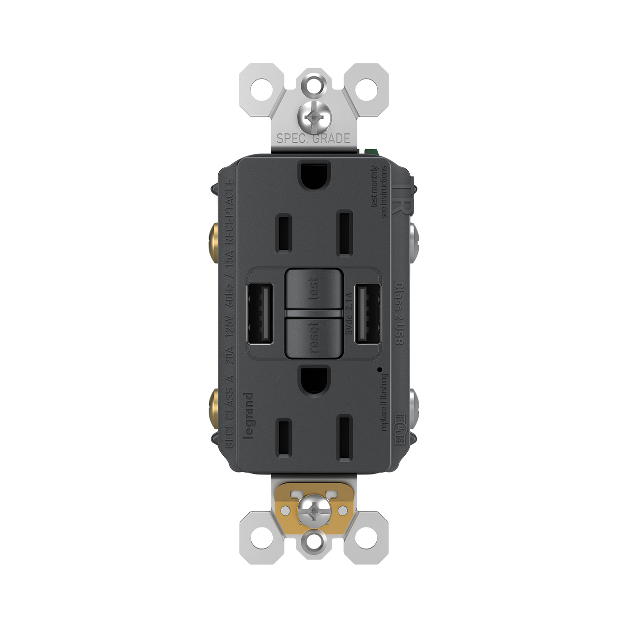 radiant® GFCI USB Outlet, Type A, 15A, Tamper-Resistant, Graphite