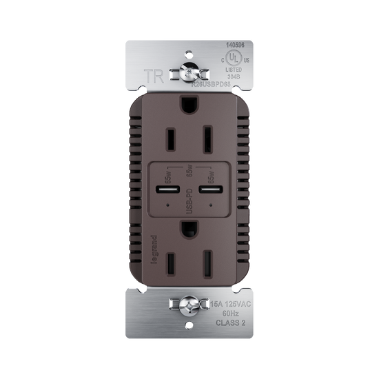 radiant 65W USB Outlet, Type C, 15A, Tamper-Resistant, Brown