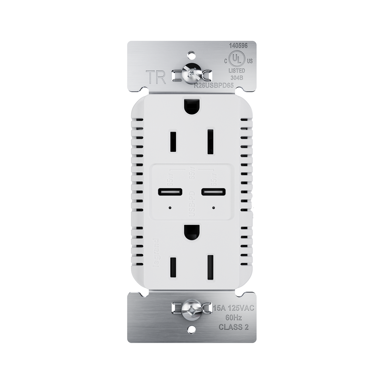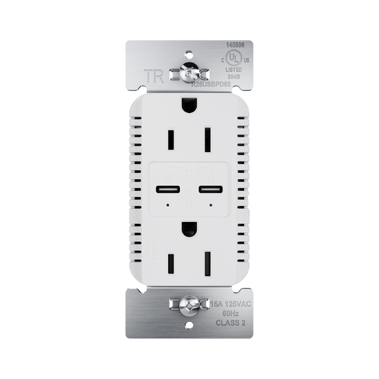 Charge the latest smartphones, tablets and small laptops with the 65W USB Outlet featuring dual Type-C USB ports with Power Delivery. The result is a fast, long-lasting outlet for convenient in-wall charging, specially designed to safely and efficiently charge your devices. Easily replace a traditional outlet in as little as ten minutes to gain the modern functionality of intelligent charging for maximized speeds, complete with multi-layered overcurrent protection to keep the outlet and your devices safe from damage. An industry-exclusive charging indicator light tells you when your device is charging and when it's fully charged, for life on the go. Made exclusively for use with screwless Wall Plates from the radiant® Collection, sold separately.