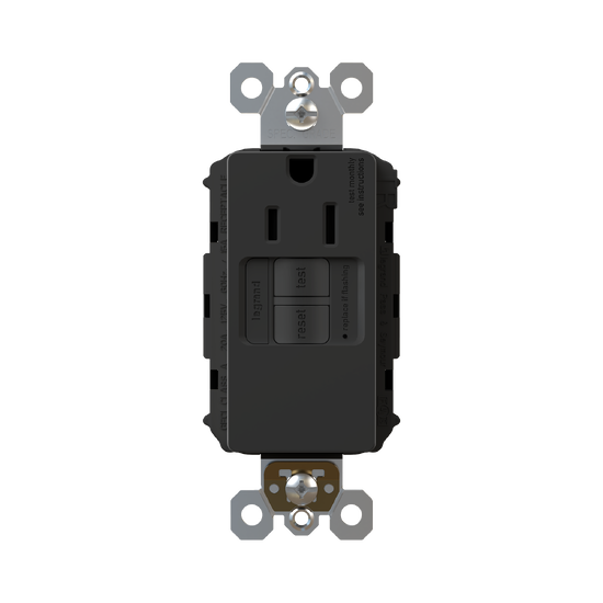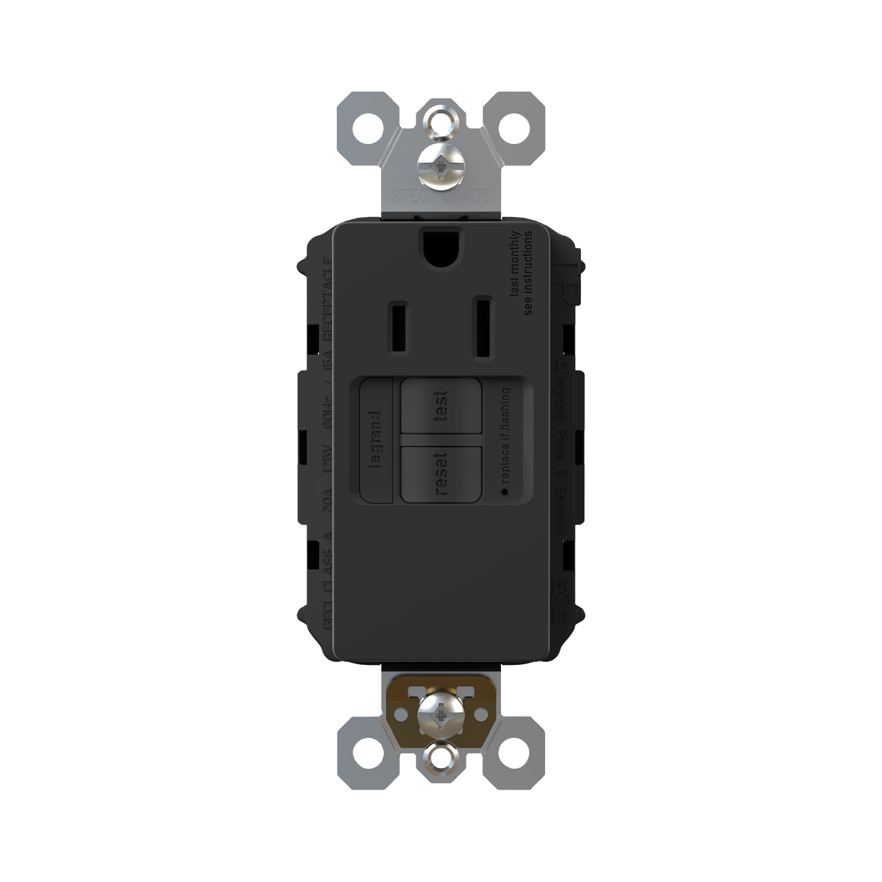 radiant® Tamper-Resistant 15A Simplex Self-Test GFCI Receptacles with SafeLock® Protection, Black