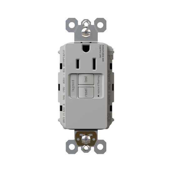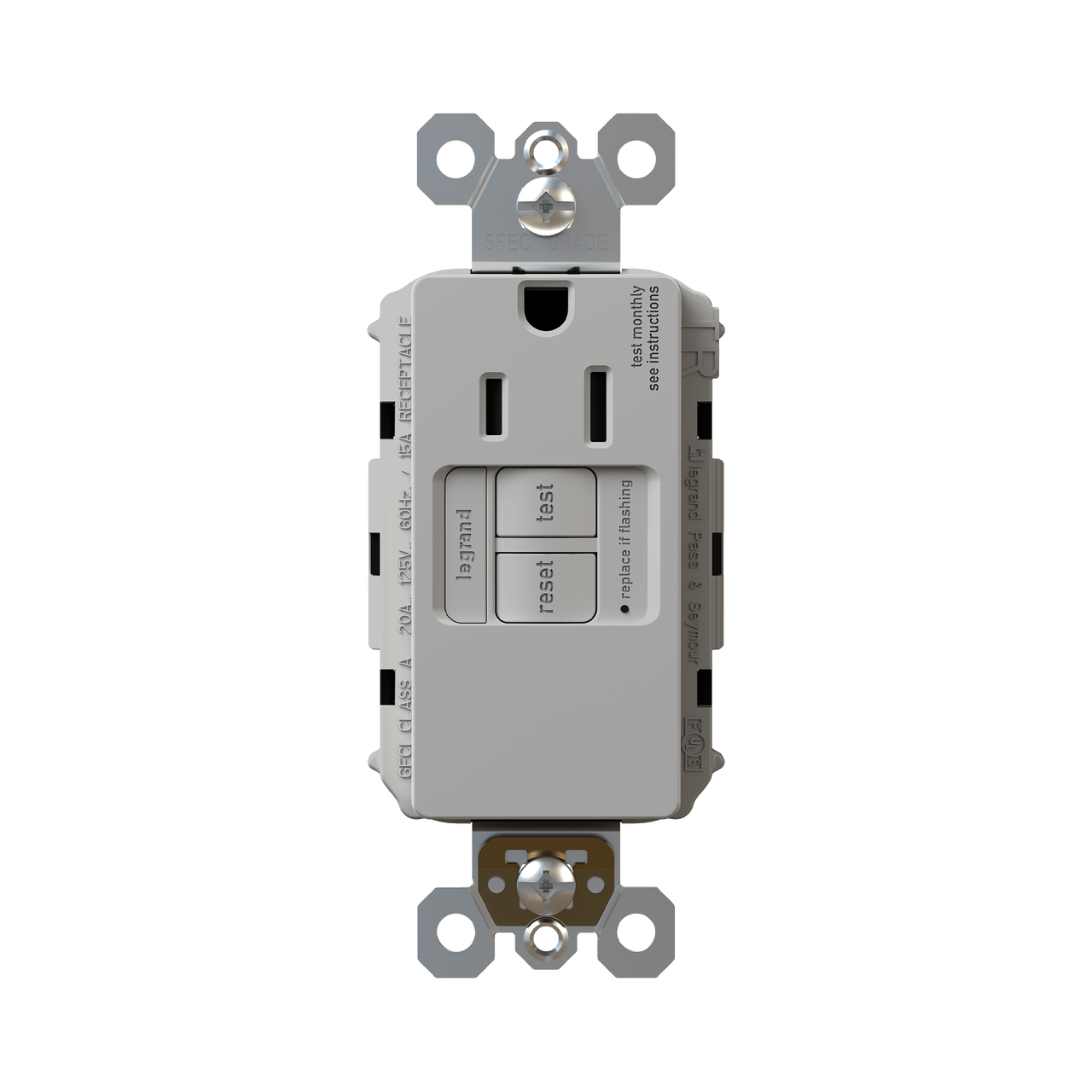 radiant® Tamper-Resistant 15A Simplex Self-Test GFCI Receptacles with SafeLock® Protection, Gray