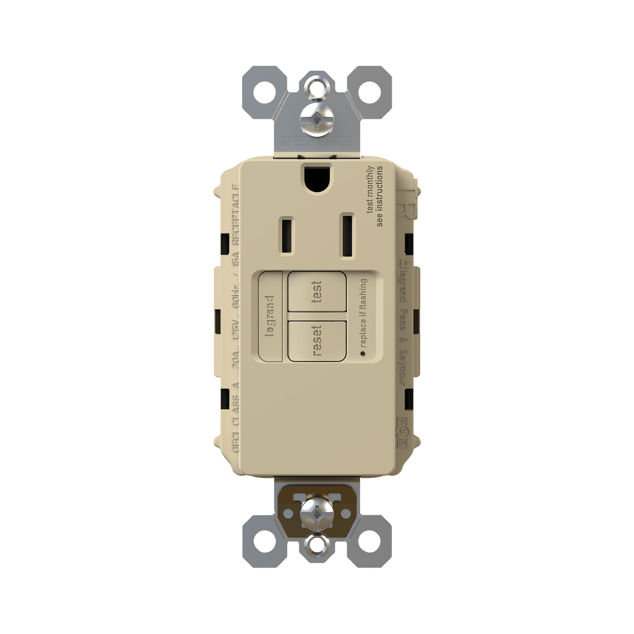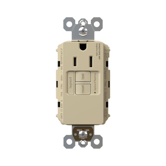 radiant® Tamper-Resistant 15A Simplex Self-Test GFCI Receptacles with SafeLock® Protection, Ivory