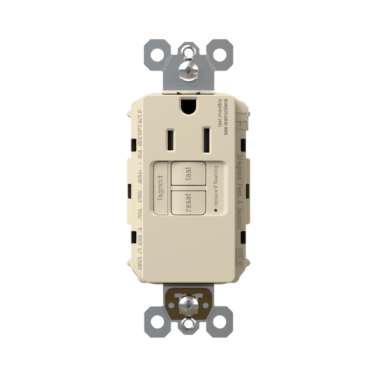 radiant® Tamper-Resistant 15A Simplex Self-Test GFCI Receptacles with SafeLock® Protection, Light Almond