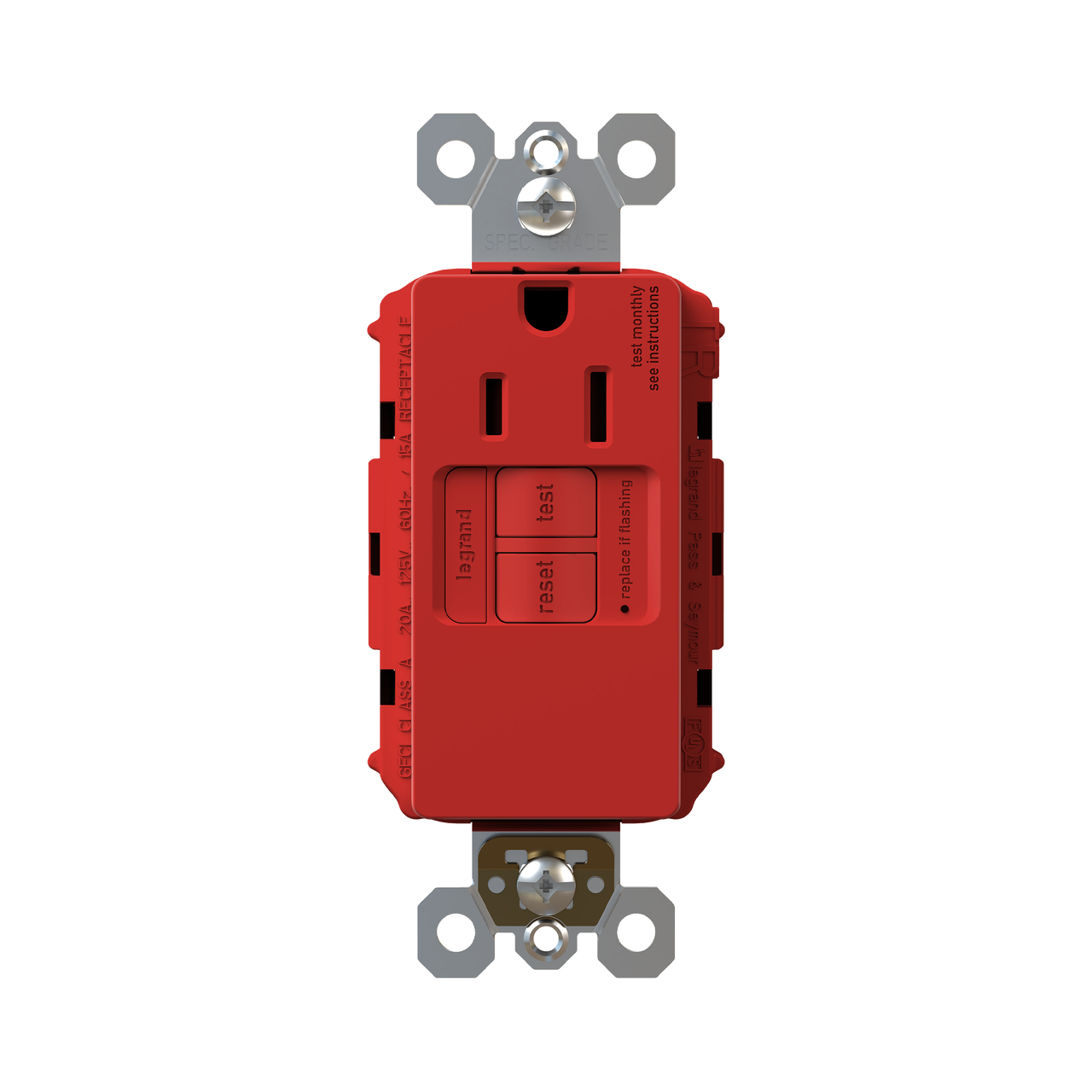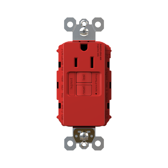 radiant® Tamper-Resistant 15A Simplex Self-Test GFCI Receptacles with SafeLock® Protection, Red