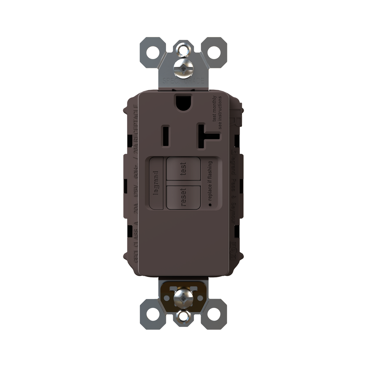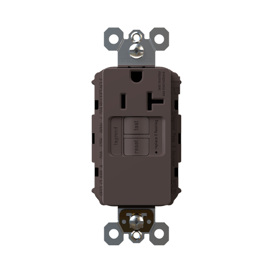 radiant® Tamper-Resistant 20A Simplex Self-Test GFCI Receptacles with SafeLock® Protection, Brown