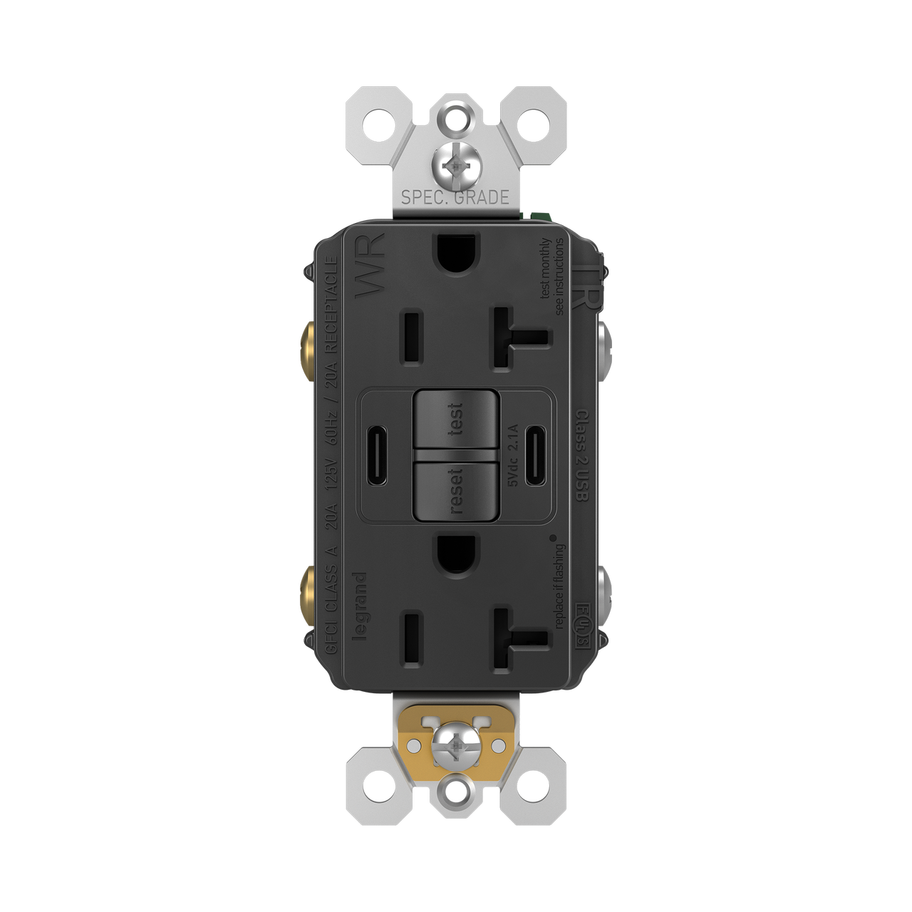 radiant® Weather-Resistant GFCI USB Outlet with SafeLock® Protection, Type C, 20A, Tamper-Resistant, Black