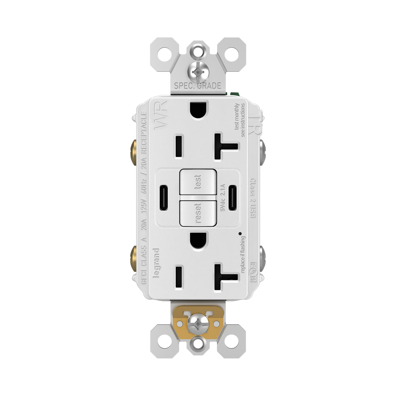 radiant® Weather-Resistant GFCI USB Outlet with SafeLock® Protection, Type C, 20A, Tamper-Resistant, White