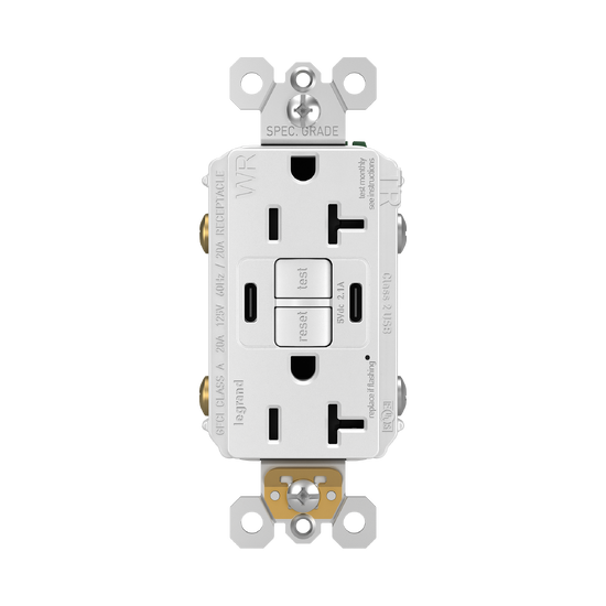 Enjoy superior safety and the convenience of built-in USB charging, in a first-of-its-kind outlet! Perfect for adding modern connectivity anywhere, including areas of the home where ground fault protection is required (kitchens, bathrooms, laundry rooms, etc). This outlet makes it easy to see and reset electrical trips right where they happen, while also providing two USB connections for keeping phones or tablets charged, no bulky adapter required.